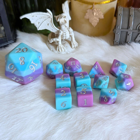 Fluorite - 10 piece d10 dice set (purple/green with copper)