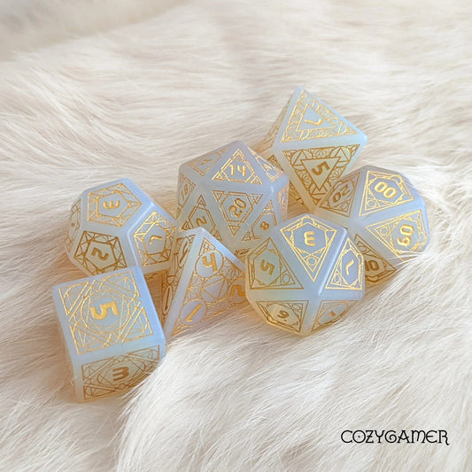 Geometric Opalite - 7 Dice Set (Real Gemstone)