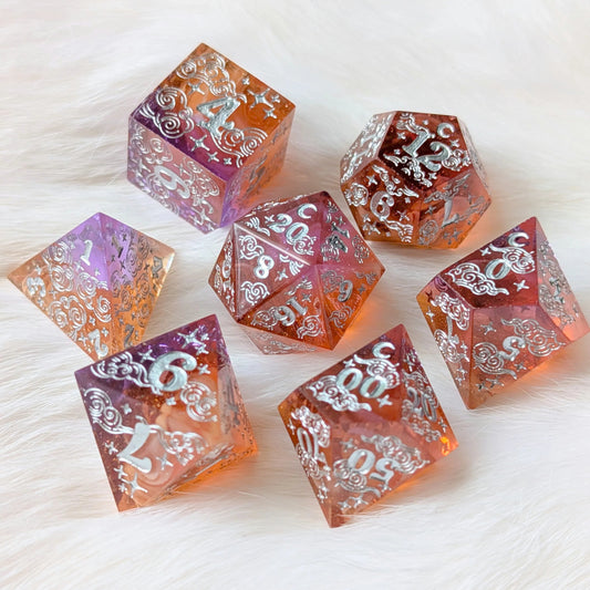 Dreamy Sunset Bloom – 7-Piece Sharp Edge Dice Set