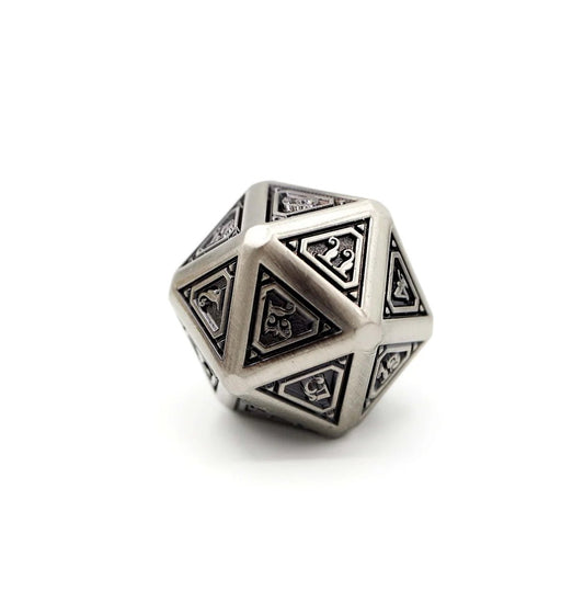 Moonlit Lantern: Silvered Frostfire - Metal RPG Dice Set