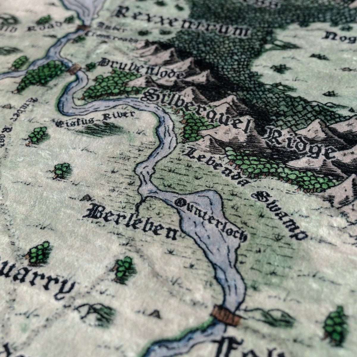 - Ultra soft, plush minky blanket with Deven Rue's map of the Dwendalian Empire printed on both sides (one in full color, one in sepia tone)