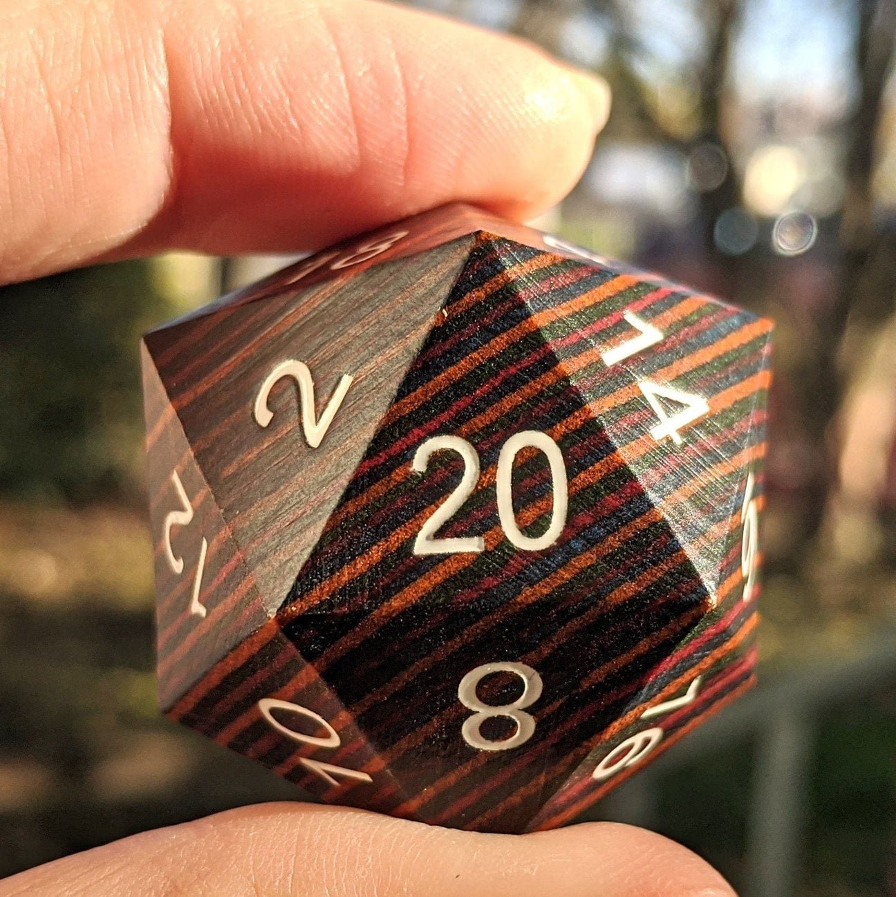 Looking for a special gift or addition to your collection? A wood dice set or D20 would be perfect!